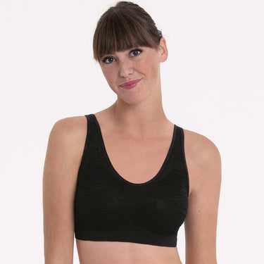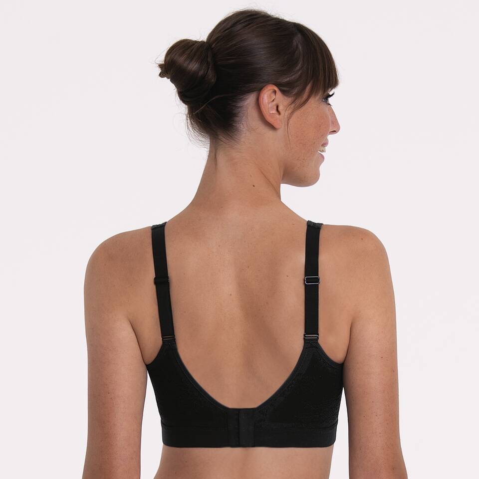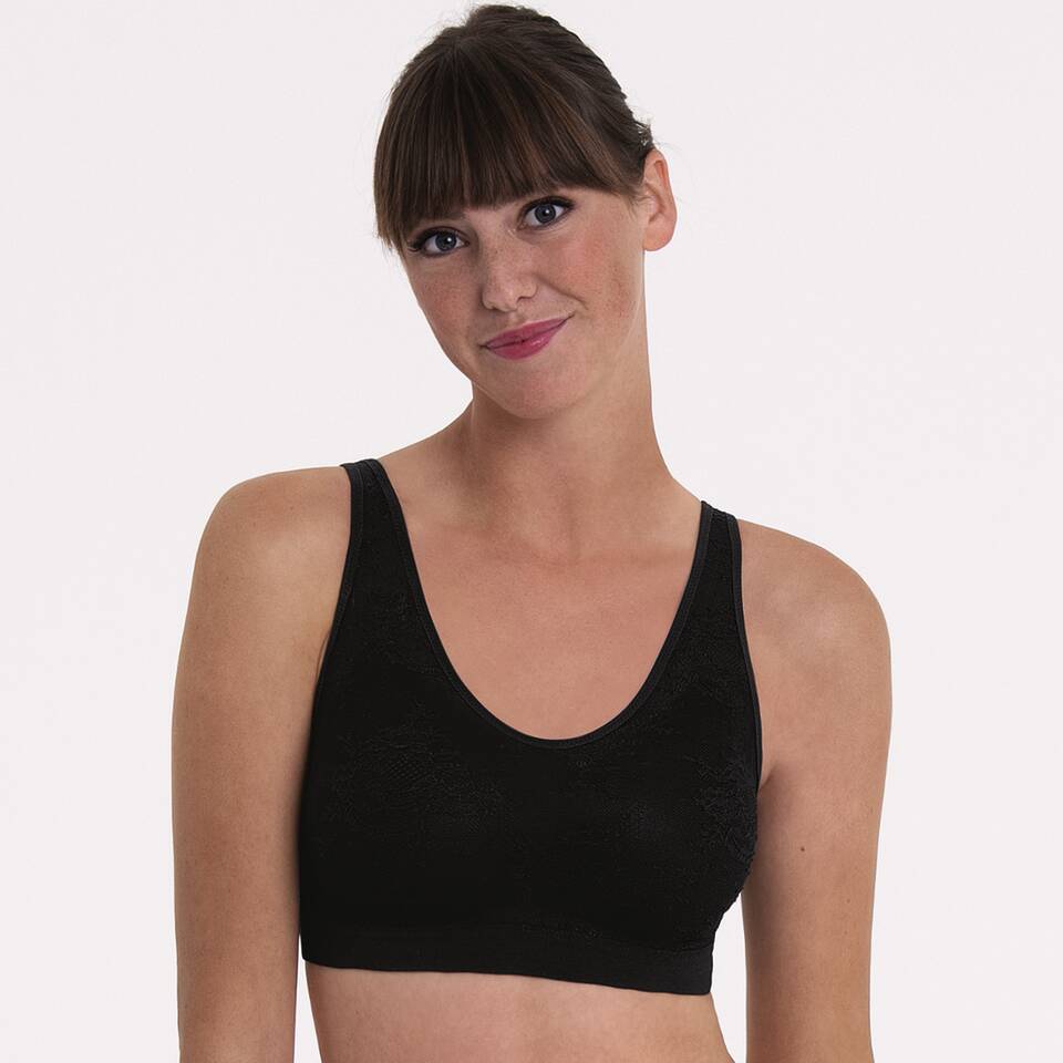 Is het een top? Is het een BH? Is het een bralette? Het is eigenlijk een cominatie van alledrie! Je zou ook kunnen zeggen een BH-top. Zo heeft deze top(per) geen beugels, maar wel uitneembare padding én is geschikt voor protheses. Deze comfortabele bh-top heeft geweldig luxe kant; dat kan je zien aan de ieniemini kleine knoopjes: écht kant is namelijk geknoopt! De schouderbandjes zijn afstelbaar, het brede rugpand heeft 4 stapjes in de sluiting. De functionele materialen zorgen voor een hoog draagcomfort. En deze top heeft geen beugels. Héérlijk voor een dagje thuis, een reis in de auto of vliegtuig, na het sporten, maar ook heel geschikt voor dagelijks gebruik. Deze Essential van Anita heeft een internationale maatvoering (XS, S, M, L, Xl, XXL) dus als je weet wat je juiste BH-maat is kun je in het tabelletje zien welke maat voor jou geschikt is. Maar, kom gerust langs in de winkel om samen even te kijken, wat jou het beste past en voelt. Het blijven tenslotte richtlijnen.