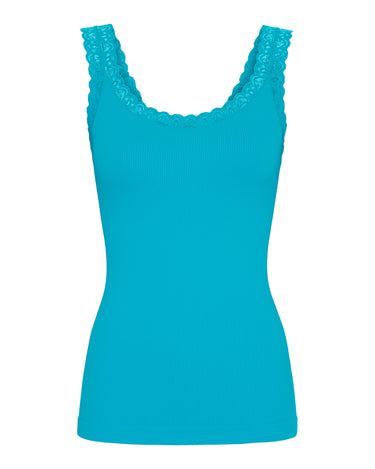 Dit is écht zo'n hemdje waar je niet genoeg van kunt krijgen en hebben! De ronde hals is prachtig afgezet met elastisch kant en het kant loopt door op de ronde rug. De hemdjes van Tim & Simonsen zijn ontworpen door de vriendinnen Tim en (jawel) Simonsen en ze worden geproduceerd in het mooie Italië. Helemaal rondgebreid, dus geen zijnaden én geen kriebelende labeltjes! De top Frida heeft ribbeltjes en is gemaakt van een microfiber stof (polyamide) met elastaan. Dus lekker stretchy en super comfortabel! Deze hemdjes zijn heel cool om te combineren met al jouw outfits want er is altijd een kleur die er goed bij past. Er zijn twee maten. S/M en L/XL. Dat is vanaf maat 36 t/m 44. De hemdjes zijn geschikt om het hele jaar door te dragen. Waarschuwing: uiterst verslavend!