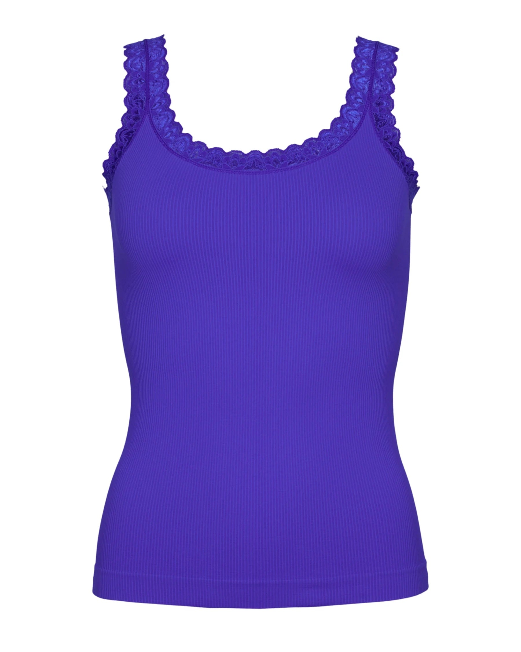 Dit is écht zo'n hemdje waar je niet genoeg van kunt krijgen en hebben! De ronde hals is prachtig afgezet met elastisch kant en het kant loopt door op de ronde rug. De hemdjes van Tim & Simonsen zijn ontworpen door de vriendinnen Tim en (jawel) Simonsen en ze worden geproduceerd in het mooie Italië. Helemaal rondgebreid, dus geen zijnaden én geen kriebelende labeltjes! De top Frida heeft ribbeltjes en is gemaakt van een microfiber stof (polyamide) met elastaan. Dus lekker stretchy en super comfortabel! Deze hemdjes zijn heel cool om te combineren met al jouw outfits want er is altijd een kleur die er goed bij past. Er zijn twee maten. S/M en L/XL. Dat is vanaf maat 36 t/m 44. De hemdjes zijn geschikt om het hele jaar door te dragen. Waarschuwing: uiterst verslavend!
