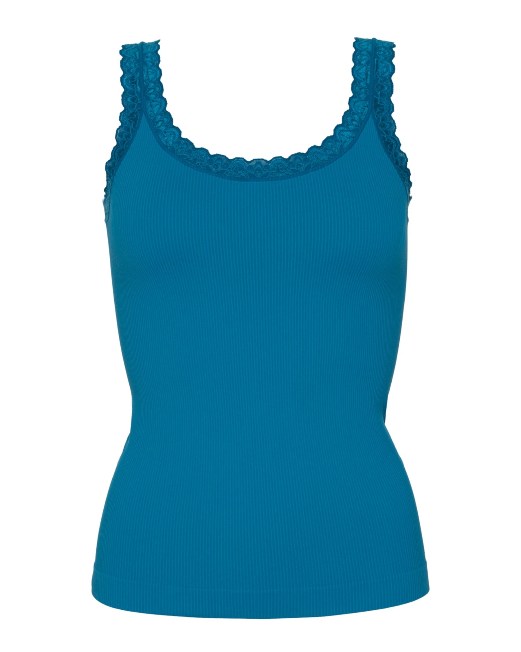 Dit is écht zo'n hemdje waar je niet genoeg van kunt krijgen en hebben! De ronde hals is prachtig afgezet met elastisch kant en het kant loopt door op de ronde rug. De hemdjes van Tim & Simonsen zijn ontworpen door de vriendinnen Tim en (jawel) Simonsen en ze worden geproduceerd in het mooie Italië. Helemaal rondgebreid, dus geen zijnaden én geen kriebelende labeltjes! De top Frida heeft ribbeltjes en is gemaakt van een microfiber stof (polyamide) met elastaan. Dus lekker stretchy en super comfortabel! Deze hemdjes zijn heel cool om te combineren met al jouw outfits want er is altijd een kleur die er goed bij past. Er zijn twee maten. S/M en L/XL. Dat is vanaf maat 36 t/m 44. De hemdjes zijn geschikt om het hele jaar door te dragen. Waarschuwing: uiterst verslavend!