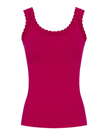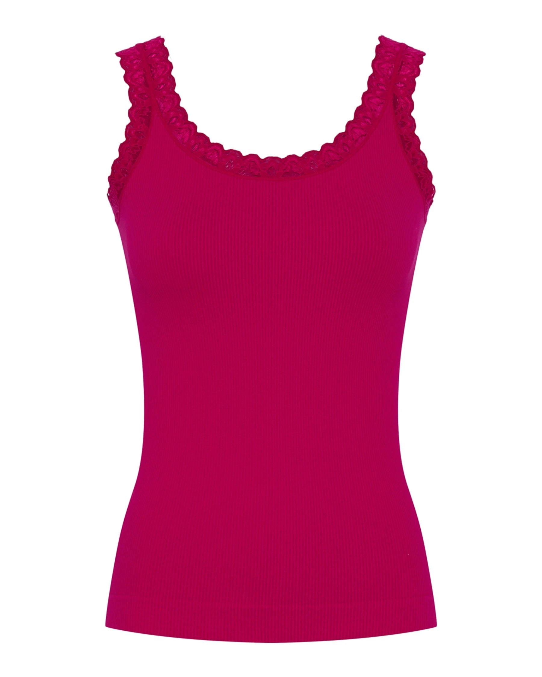 Dit is écht zo'n hemdje waar je niet genoeg van kunt krijgen en hebben! De ronde hals is prachtig afgezet met elastisch kant en het kant loopt door op de ronde rug. De hemdjes van Tim & Simonsen zijn ontworpen door de vriendinnen Tim en (jawel) Simonsen en ze worden geproduceerd in het mooie Italië. Helemaal rondgebreid, dus geen zijnaden én geen kriebelende labeltjes! De top Frida heeft ribbeltjes en is gemaakt van een microfiber stof (polyamide) met elastaan. Dus lekker stretchy en super comfortabel! Deze hemdjes zijn heel cool om te combineren met al jouw outfits want er is altijd een kleur die er goed bij past. Er zijn twee maten. S/M en L/XL. Dat is vanaf maat 36 t/m 44. De hemdjes zijn geschikt om het hele jaar door te dragen. Waarschuwing: uiterst verslavend!