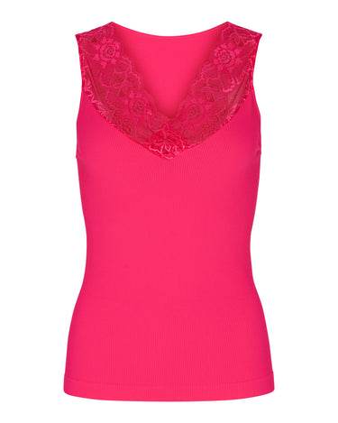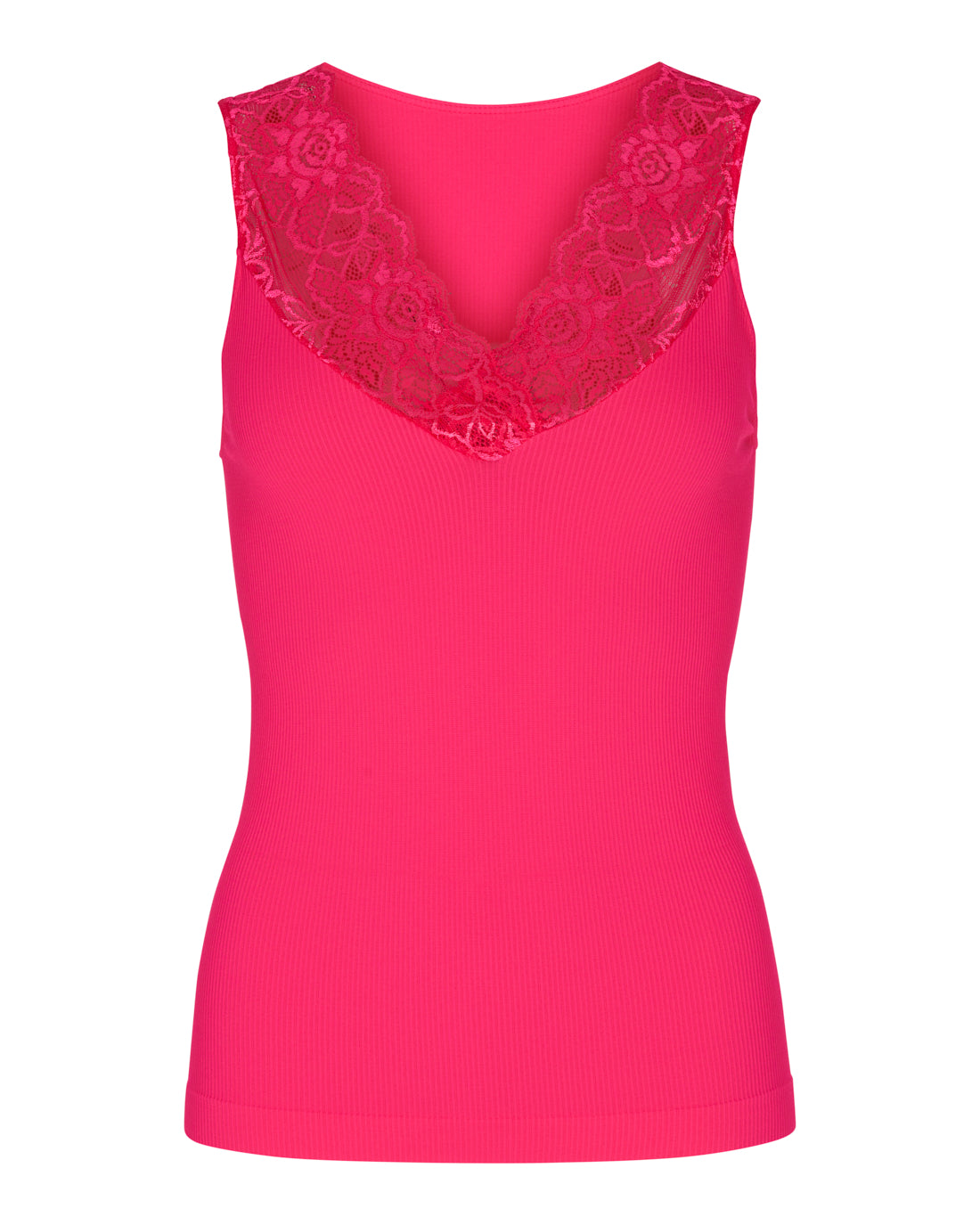 Dit is écht zo'n hemdje waar je niet genoeg van kunt krijgen en hebben! De v-hals is prachtig afgezet met elastisch kant en de hoge rug is praktisch; geen afzakkende bandjes mogelijk. De hemdjes van Tim & Simonsen zijn ontworpen door de vriendinnen Tim en (jawel) Simonsen en ze worden geproduceerd in het mooie Italië. Helemaal rondgebreid, dus geen zijnaden én geen kriebelende labeltjes! De top Belen heeft ribbeltjes en is gemaakt van een microfiber stof (polyamide) met elastaan. Dus lekker stretchy en super comfortabel! Deze hemdjes zijn heel cool om te combineren met al jouw outfits want er is altijd een kleur die er goed bij past. Er zijn twee maten. S/M en L/XL. Dat is vanaf maat 36 t/m 44. De hemdjes zijn geschikt om het hele jaar door te dragen. Waarschuwing: uiterst verslavend!